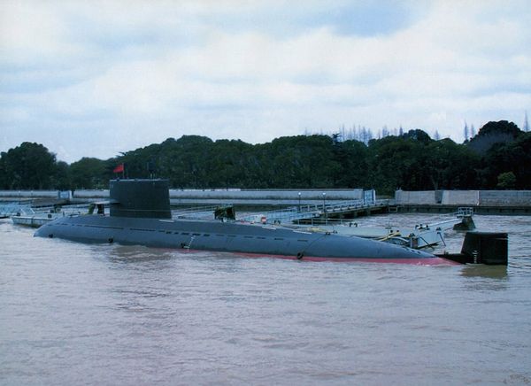資料圖:2009年4月23日下午,為紀念中國人民解放軍海軍成立60周年而舉行的海上閱兵在青島附近黃海海域舉行。海上檢閱式分兩個階段,第一階段為海上分列式,檢閱中國海軍的艦艇和飛機;第二階段為海上閱兵式,檢閱來自14個國家的21艘艦艇。圖為接受檢閱的中國海軍核潛艇。