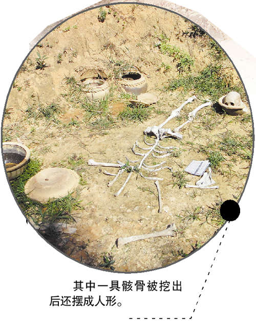 昨日上午,廣州市蘿崗區(qū)九龍鎮(zhèn)湯村村大逕社的湯伯來到村旁的祖墳拜祭,卻吃驚地發(fā)現(xiàn),父母的墳?zāi)贡痪?,遺骸被砸灑落遍地。四處查看后,湯伯更加吃驚,墳地里一共有12座墳?zāi)贡痪?,骸骨遍地。村民們聽聞消息趕來,憤怒不已:“這傷天害理的事,到底是誰干的?”