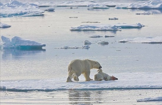 北極熊殘殺進(jìn)食幼仔被拍