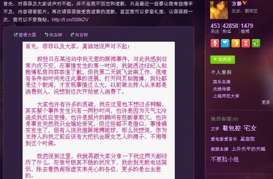 方齡微博截圖