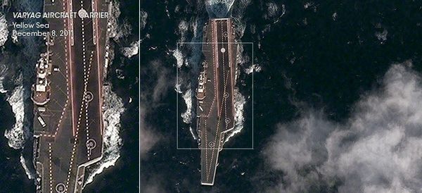 數(shù)字地球公司稱這艘航母出現(xiàn)在其極軌衛(wèi)星12月8日從450公里高空拍攝到的一張充滿云團(tuán)的照片上。該公司分析中心主管斯蒂芬·伍德說(shuō),航母是通過(guò) “衛(wèi)星圖像加上互聯(lián)網(wǎng)上的資料以及地形的結(jié)合”被發(fā)現(xiàn)的,但“最后還是要靠人來(lái)發(fā)現(xiàn)”。
