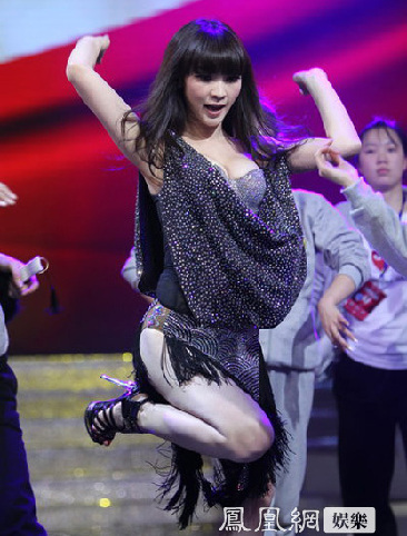 柳巖亮相衣著夸張當(dāng)眾玩換裝 撩裙露乳(組圖)
