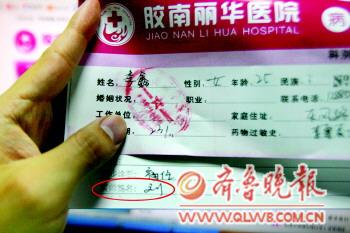 11月23日,記者以患者身份到位于膠南市瑯琊臺(tái)路的麗華醫(yī)院看病,掛了婦科門診,一位劉姓醫(yī)生簡單詢問了記者病情后,就填寫了病歷,并要求記者去交錢做腹超和血性激素6項(xiàng)檢查。劉醫(yī)生填寫完病歷后,在醫(yī)師簽名一項(xiàng)里,只寫了姓氏“劉”,而且6項(xiàng)檢驗(yàn)單的醫(yī)生簽字項(xiàng)也只是填寫了一個(gè)“劉”字。