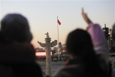 ????新年第一天,天安門(mén)廣場(chǎng)的升旗儀式有些特別。以前從未向普通民眾開(kāi)放的天安門(mén)觀禮臺(tái),首次迎來(lái)5000名看升旗的游客。天安門(mén)管委會(huì)也成為北京首個(gè)設(shè)立“旅游開(kāi)放日”的政府機(jī)構(gòu)。