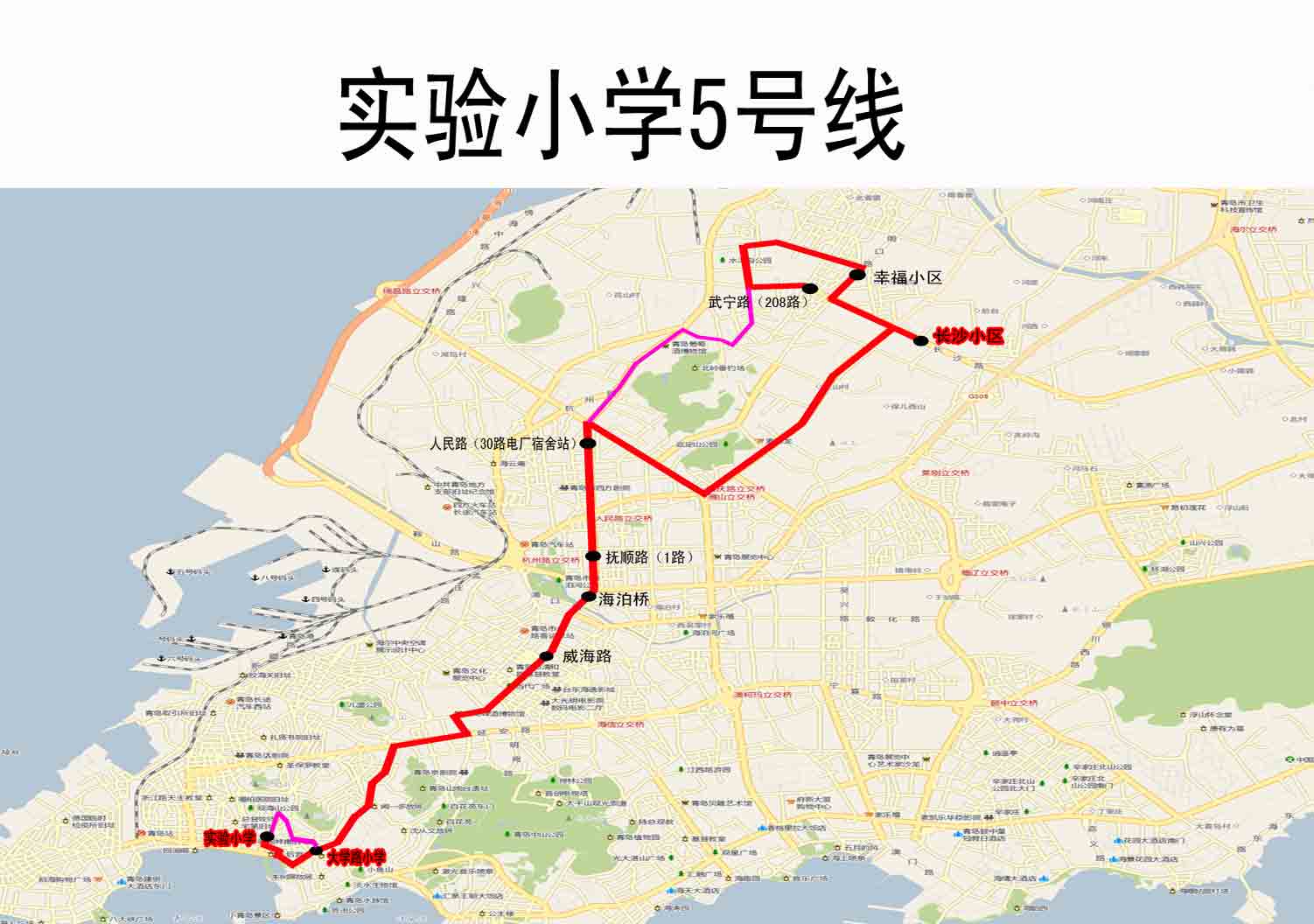 ??? ①武寧路(208路站)、②幸福家園、③長沙小區(qū)、④人民路(30路電廠宿舍站)、⑤嘉定路(1路車站)、⑥撫順路(1路車站)、⑦海泊橋、⑧威海路,直達(dá)學(xué)校。