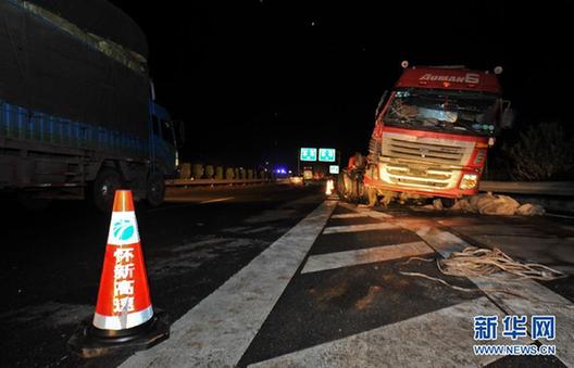 1月3日,事故發(fā)生現(xiàn)場(chǎng)尚在清理之中,車輛緩慢通行。新華社記者 白禹攝