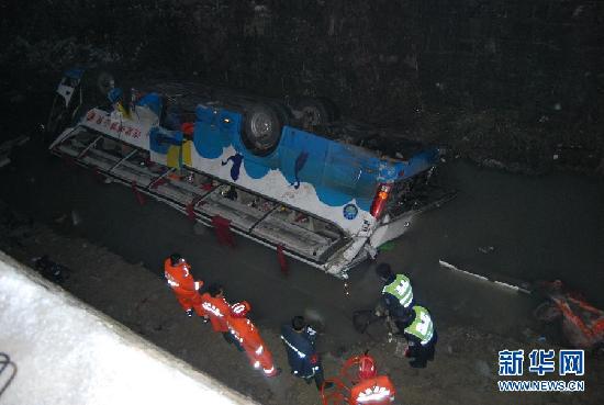 這是事故現(xiàn)場(chǎng)(1月4日攝)。1月4日18時(shí)40分左右,貴州省貴定縣境內(nèi)的蘭(州)海(口)高速公路貴新段發(fā)生一起交通事故,一輛從安徽駛來的旅游客車翻下約10米深的山溝,事故目前已造成3人死亡。記者從黔南州貴定縣相關(guān)部門了解到,事故地點(diǎn)位于蘭海高速公路1765千米加500米處。據(jù)參與現(xiàn)場(chǎng)救援的消防隊(duì)員介紹,該客車荷載乘客約50人,通過福泉市、貴定縣消防大隊(duì)官兵的奮力施救,目前已救出人員約30人。事故發(fā)生原因及傷亡情況正在進(jìn)一步調(diào)查統(tǒng)計(jì)中,現(xiàn)場(chǎng)救援工作仍在緊張進(jìn)行。新華社發(fā)(卜俊攝)
