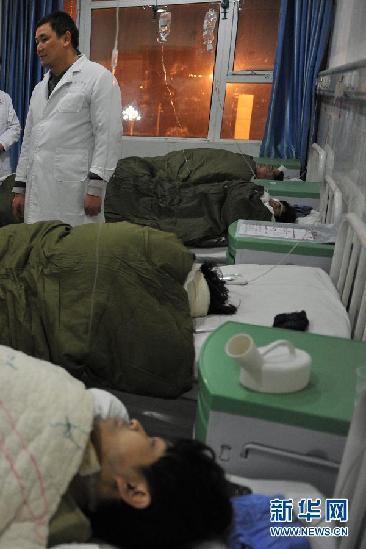 1月5日,事故傷員在貴定縣醫(yī)院接受救治。蘭海高速貴州境內(nèi)貴定縣到福泉市路段4日18時(shí)30分左右發(fā)生一起大客車翻車事故,至4日22時(shí),現(xiàn)場(chǎng)救援工作基本結(jié)束,事故已造成16人死亡。(新華社記者 劉續(xù) 攝)