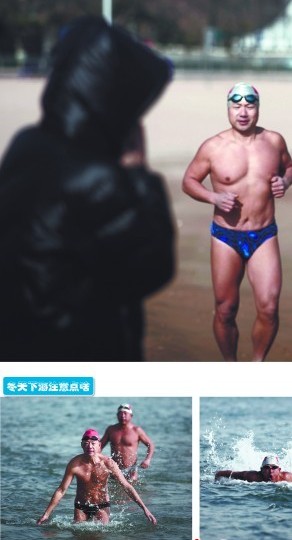 下水前,一般要用海水把身上濕一下,以便適應(yīng)海水溫度。 老宿以前的外號(hào)叫“小胖牛”,原因就是他太胖了,一米七左右的身高,有200斤的體重。隨著年齡過(guò)了40歲大關(guān),他的身體出現(xiàn)了嚴(yán)重的“三高”。堅(jiān)持冬泳6年,他現(xiàn)在什么毛病都沒有了,甚至幾年沒感冒了,他說(shuō),這都是冬泳的作用。 據(jù)了解,現(xiàn)在島城有四五千人幾乎每天游泳。是什么讓他們對(duì)冬泳如此鐘愛,難道不冷嗎?1月4日中午,記者原本打算跟著他們體驗(yàn)一把,可是在刺骨的寒風(fēng)中,記者最終沒有獲準(zhǔn)下水,因?yàn)槎疽惨驖u進(jìn)。 ◎冬泳現(xiàn)場(chǎng) 寒風(fēng)中,踩著碎冰下海 1月4日中午11點(diǎn),剛剛下完一場(chǎng)“太陽(yáng)雪”,市區(qū)里邊的風(fēng)算不上大??墒?,當(dāng)記者走到三浴海邊的時(shí)候,還是不自覺地把羽絨服上的帽子戴上了。海邊的風(fēng)非常冷,涼氣順著袖子管往羽絨服里灌,記者不由自主地把手塞進(jìn)了口袋。 雖然海水在陽(yáng)光下寒風(fēng)中波光粼粼,可是,沙灘上已經(jīng)結(jié)了一層冰,就在這些冰層上有人只穿著泳衣在熱身,他們穿著涼拖鞋,踩在冰層上,昂著頭在慢跑。雖然他們看起來(lái)并沒有發(fā)抖,可是,他們身上的皮膚已經(jīng)泛紅。 記者和老宿等三浴冬泳俱樂部的人見面的時(shí)間是中午11點(diǎn),記者到時(shí)他們已經(jīng)在屋里等著了?!拔覀?nèi)藖?lái)了不少,有些正在換衣服、熱身?!鼻鄭u市冬泳協(xié)會(huì)副主席王志剛一邊對(duì)記者說(shuō),一邊帶領(lǐng)記者走進(jìn)了更衣室。 在更衣室里,記者看到有幾名冬泳愛好者都已經(jīng)脫掉了厚重的外衣,只穿一條泳褲,雖然更衣室里沒有暖氣,室溫跟室外溫度差不多。 “這個(gè)是老隋,也是青島三浴冬泳俱樂部的會(huì)員?!蓖踔緞傊钢谔芍贤聘茆彽囊幻欣夏昴凶诱f(shuō),“他今年56歲了,每天都堅(jiān)持游泳,身體非常好?!?/p> 老隋說(shuō),他熱身后將和幾個(gè)好友一起下水,“雖然我們每天都會(huì)下水,可是,每次下水前還是要做好熱身的準(zhǔn)備,畢竟,現(xiàn)在的水溫已經(jīng)到了零下,身體不熱可不能下。” |