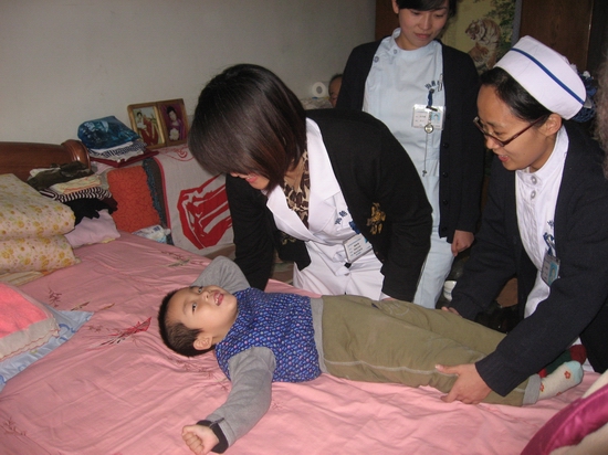 青島新聞網(wǎng)訊 春節(jié)即將來臨,當大家都在歡歡喜喜忙年的時候,全國青年文明號海慈急診科的醫(yī)護人員來到人民路的貧困殘疾家庭張作寶的家中,張作寶夫婦都有殘疾,而他們4歲半的兒子又是個腦癱,對這個本就不寬裕的家庭來說,這無疑是雪上加霜。自從2010年了解到這個情況以后,急診科的醫(yī)護人員每年都要到這個家庭來看看,為老人和孩子查查體,送上冬日的溫暖。12月31日,海慈醫(yī)院康復專家唐詠春副主任醫(yī)師、急診科劉春芬護士長等再次來到張作寶家,在為患兒查體后,又指導家長在家中自己為患兒進行康復訓練,這樣既可以減少患兒康復的開支,又有利于患兒今后的康復。他們還給老人進行了查體,叮囑老人按時服藥,有問題可以隨時和她們?nèi)〉寐?lián)系。 |
