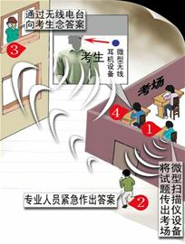 2012年全國碩士研究生招生考試昨天開考,全國共有165.6萬考生參加考試,競爭相當(dāng)激烈,于是個別想投機取巧的考生鋌而走險選擇作弊應(yīng)對考試。昨天上午10時左右,在島城一所高??键c附近,無線電監(jiān)測人員竟接連發(fā)現(xiàn)兩處發(fā)送考研政治題答案的窩點,將向考生發(fā)送答案的人員及“槍手”抓了個現(xiàn)行,目前警方已介入調(diào)查。記者調(diào)查了解到,這兩處考研作弊窩點作案手法相同,都是向考生提供微型無線耳機設(shè)備,由其他人員進入考場用微型掃描儀設(shè)備將試題傳出考場,并由專業(yè)人員緊急作出答案,隨后由人員通過無線電臺向考生念答案。 ●現(xiàn)場 開考55分鐘傳出“答案” 無線電管委會人員追查發(fā)現(xiàn)作弊窩點藏身酒店 昨天上午9時25分左右,政治考試開考55分鐘后,陪女兒參加考研的市民劉林(化名)在考點前馬路上溜達時,一名手持無線電信號探測儀的青島無線電管委會工作人員從他身旁經(jīng)過,他忽然間聽到,探測儀里傳出一名男子正在用標(biāo)準(zhǔn)普通話念考研政治簡答題答案。“我聽到那名男子正在念關(guān)于居民收入分配方面的答案,事后女兒告訴我那是政治試卷第36題的答案?!卑l(fā)現(xiàn)有人正通過無線電波傳輸考研答案,劉林又驚又氣,便跟隨這名工作人員去找尋作弊窩點。 考場外截獲作弊信號 “念答案的那名男子普通話非常好,說的答案我聽得一清二楚。”通過無線電信號探測儀的信號強弱,無線電管委會工作人員在兩名校園保安的陪同下,首先沿教學(xué)樓往西南方向搜索,當(dāng)?shù)竭_寧夏路與香港東路交界處時信號減弱,他們便往北搜尋,經(jīng)過反復(fù)探測,工作人員將發(fā)送無線電信號的窩點鎖定在新竹路6號一家商務(wù)酒店附近。 劉林說,工作人員在探測儀指引下通過樓道步行前往酒店4樓,經(jīng)過詳細探測,確定402房間往外發(fā)送無線電波?!肮烙嬍俏覀兊哪_步聲讓發(fā)送答案的人員有所察覺,念答案的人突然換成一名女子。”手持無線電探測儀的工作人員與保安在4樓樓梯口蹲守時,一名40歲左右、中等身材的男子從房間中走出,他身穿灰色外套,神情慌張,一走出房間便跑下樓。 酒店房間搜出作弊器 “這名男子立即往樓下走,結(jié)果念答案的女子突然不說話了?!边@一反常的情況,讓無線電管委會工作人員更加確認剛才的判斷,由于他們無權(quán)敲開房門進去搜查,便趕緊向上級領(lǐng)導(dǎo)匯報并撥110,隨后相關(guān)負責(zé)人趕到現(xiàn)場,讓酒店服務(wù)員打開402房門,劉林看了一下手表,當(dāng)時是上午9時55分。 “一名20多歲的女青年在房間里,寫字臺上放著兩臺筆記本電腦,經(jīng)過檢查發(fā)現(xiàn)電腦桌面上有考研政治試題的電子版試卷和答案。”起初女青年不承認發(fā)送考研試題答案,無線電管委會兩名工作人員最后在被窩里搜出一臺無線電發(fā)送設(shè)備,設(shè)備上還連著天線,工作人員將筆記本電腦及無線電發(fā)射設(shè)備當(dāng)場收繳。 劉林告訴記者,工作人員在搜查設(shè)備時,跑到樓下的男子曾悄悄溜回房間,一見不妙又趕緊下樓?!?10民警也迅速趕來,將在樓下的中年男子及房間內(nèi)的女青年帶回金門路派出所調(diào)查?!?/p> 寶馬車內(nèi)揪出“助考者” 車內(nèi)搜出一臺無線電發(fā)射設(shè)備和兩臺筆記本電腦 處理完酒店內(nèi)的作弊窩點后,手持無線電探測儀的工作人員與校園保安又返回考點。結(jié)果剛到達考點,無線電探測儀中又傳出念考研答案的信號?!斑@次念考研答案的也是個男的,但聲音很小,應(yīng)該就在附近。”無線電管委會工作人員拿著無線電探測儀立即在考點周圍展開調(diào)查,根據(jù)信號源的強弱程度,最終將發(fā)射源初步確定在與考點只有一路之隔、考點北側(cè)一處空曠的鍋爐房大院內(nèi)。 “大院內(nèi)停放著一輛寶馬七系黑色轎車,車牌號為魯F開頭,轎車車頭朝北,無線電管委會工作人員和兩名校園保安來到車尾部,發(fā)現(xiàn)無線電信號探測儀信號非常強?!眲⒘终f,無線電管委會工作人員隨后敲開車門,坐在駕駛室的男子一見,表情很不自然。 據(jù)劉林介紹,當(dāng)時車內(nèi)還坐著兩名男青年,車上也有兩臺筆記本電腦。“工作人員在車后座下方也搜出一臺無線電發(fā)射設(shè)備,駕駛員是煙臺口音,他承認那臺設(shè)備是發(fā)送考研試題答案的。”劉林說,寶馬車駕駛員當(dāng)時還想開車溜走,校園保安立即關(guān)上大院鐵門,這3名男子才作罷,隨后110民警迅速趕來將3名男子帶回派出所調(diào)查。 ●進展 作弊人員移交教育局 記者隨后從市南公安分局求證得知,昨天上午9時55分左右,市公安局110指揮中心接到無線電管委會工作人員電話稱,他們利用無線電信號探測儀監(jiān)測發(fā)現(xiàn),在新竹路一家商務(wù)酒店的402房間內(nèi)發(fā)現(xiàn)無線電信號,屋內(nèi)極可能有參與考研作弊的人員。接到報警后,市局110指揮中心立刻指派金門路派出所14號警車前往現(xiàn)場,協(xié)助無線電管委會工作人員進行搜查,民警在房間內(nèi)搜索發(fā)現(xiàn)兩臺筆記本電腦以及一臺無線電發(fā)射器設(shè)備,將有作案嫌疑的中年男子及女青年帶回金門路派出所調(diào)查,隨后將兩人被移交給市教育局。 昨晚6時30分許,記者聯(lián)系到嶗山公安分局相關(guā