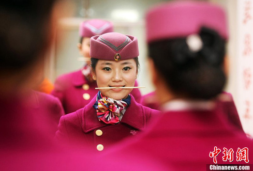 動(dòng)姐對鏡咬筷子練習(xí)微笑迎春運(yùn)