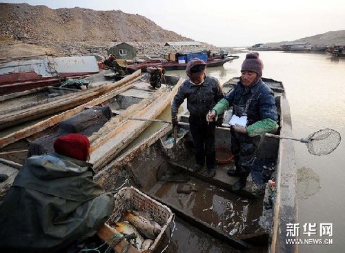 12萬人面臨飲水困難因水位下降,鄱陽湖都昌印山水域漁民只有少量魚可打,賣魚的錢有時(shí)難以抵上消耗的柴油費(fèi)(1月6日攝)。