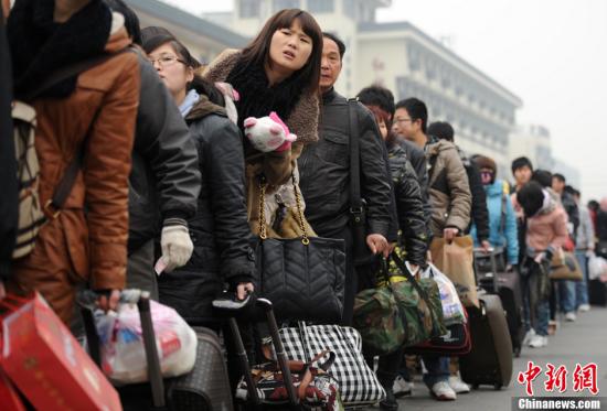2012年春運從1月8日開始至2月16日結(jié)束,持續(xù)40天。據(jù)預(yù)測,2012年春運期間客流量將達到31.58億人次,同比增長9.1%。圖為西安火車站春運場景。張遠攝