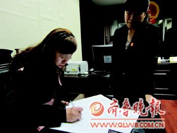 杜某在拘留決定書上簽字。 ????11日下午4時許,39歲的杜某與家人乘飛機去海南旅游時,因違反限高令在機場被扣留。據(jù)悉,杜某是一家汽車銷售有限公司的法人,公司專門銷售保時捷等豪車。但自2004年公司成立以來,公司欠下各種款項高達800余萬元。2009年起,市南法院多次強制執(zhí)行,但公司停業(yè),也始終找不到法人杜某。但在法庭里,杜某卻稱自己只是掛名的法人代表,也是受害者。 ????要去海南游,機場被扣留 ????39歲的杜某是青島格爾攀汽車銷售有限公司的法人代表,公司在2004年成立,專門銷售保時捷等豪車,期間,格爾攀公司先后欠下不同客戶房租、裝修費和購車費等款項高達800余萬元,至今未還。2009年格爾攀公司停業(yè)。市南法院執(zhí)行局多次根據(jù)杜某身份證上所提供的地址上門強制執(zhí)行,但發(fā)現(xiàn)杜某早就不在該地址居住。 ????11日,杜某與兩名家人欲搭乘下午4時青島飛往海南的航班,在過安檢時,機場的電腦顯示,杜某為欠款不還的老賴,被限制了高消費不得搭乘飛機,機場人員隨即將她扣下,兩名家人則繼續(xù)飛往海南旅游。隨后,市南法院執(zhí)行局工作人員到達。看到法官后,杜某的表情平靜,但不忘辯白:“我不是公司法人,只是個出納。”隨后,執(zhí)行法官將杜某帶回法院。 ????自稱受害者,“很傻很天真” ????下午5時許,記者在市南法院31號法庭見到杜某,她身背粉紅色LV斜挎包,妝容精致。剛剛坐下,杜某便要求給家人打電話,但法官暫時拒絕她的要求。隨后,法官向她列舉了格爾攀公司欠下的款項清單,但杜某稱其中大部分所欠款項她都不知情。 ????杜某稱,公司的老板是一名來自臺灣的陳姓英籍華人。因外國人在中國注冊公司手續(xù)極其繁瑣,陳某懇求當時為公司出納的杜某來當法人,并承諾每月多給她3000元工資。雖然杜某知道法人要為公司負法律責任,但她認為,公司銷售的都是保時捷一類的豪車,實力雄厚,應該不會出問題,就答應了下來。杜某極力辯白,自稱只是公司的掛名法人,按“老板”要求給固定的賬戶打錢,不了解公司的資金流動。 ????“我當時真傻。誰知道公司會停業(yè),姓陳的2009年就卷錢跑了,我也是受害者?!倍拍撤Q她不知何為限高令,只知道2009年公司停業(yè)后因欠稅被通報過一次。雖然老板跑路,但公司尚未注銷,杜某沒法找其他工作,3年來,一直在家待業(yè)?!肮厩妨宋?年多的工資,也沒給我交保險?!倍拍撤Q,她已搬到四方區(qū)居住,這3年來一直沒有債主找上門來。 ????沒錢還款,當事人被拘留 ????市南法院執(zhí)行局局長孟新告訴記者,杜某的言辭只是代表她的個人意見,但卻無法證明她可以欠款不還,“格爾攀公司在工商的注冊記錄上顯示杜某是法人,杜某也是成年人,知道法人是公司代表,就該為公司的債務負責?!?/p> ????在法庭里,杜某多次自稱受害者,并聲稱沒有還款能力。法官告訴她,若無法還款,只好依法對她進行15天的司法拘留。杜某聽后很吃驚:“我從現(xiàn)在起就不能回家了嗎?我能聘請律師嗎?”與家人短暫通話后,杜某稱她會服從法院作出的拘留決定,但她會請律師證明自身也是受害者。隨后,執(zhí)行法官將從杜某身上搜出的4000元現(xiàn)金和一張信用卡扣留?!∶闲戮珠L稱,法院將對此案展開進一步的調(diào)查,再根據(jù)情況對杜某做處理。(記者 姜萌) |