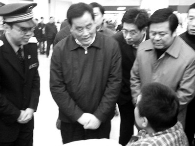盛光祖在候車大廳詢問旅客王忠山“車票好不好買”。 ????“你們車票好不好買?是怎么買到的?”……昨天中午,在武漢火車站,一位身著深藍(lán)色夾克的男子穿行在候車的人流中,不時向身邊的旅客問話。原來,他就是鐵道部黨組書記、部長盛光祖。 ????盛光祖是12時33分,搭乘廣州南——武漢的G1002次列車抵達(dá)武漢的,這也是他首次到武漢巡查春運(yùn)。 ????一走進(jìn)車站A區(qū),盛光祖就與一名男士攀談起來,他的第一句就是:“你的車票怎么買的?” ????下午3時50分,盛光祖又出現(xiàn)在漢口火車站候車大廳。 ????在候車大廳二樓,一位旅客被志愿者用輪椅送進(jìn)了“特殊旅客專區(qū)”。他是來自青島的王忠山,此前因腰椎病在漢住院治療。見狀,盛光祖迎了上去,問道:“車票好不好買?你是怎么買的車票?”王忠山回答說,“上周,我在醫(yī)院里撥打95105105,預(yù)訂了漢口—青島1114次兩張臥鋪票,在醫(yī)院附近代售點(diǎn)取的票?!?/p> ????盛光祖聽后,露出了笑容。但王忠山追了一句:“現(xiàn)在,12306網(wǎng)站太難上了,要是能上,在網(wǎng)上支付就更方便了?!?/p> ????聞言,盛光祖解釋說,現(xiàn)在12306訂票網(wǎng)站一天的點(diǎn)擊量超過了14億,相當(dāng)于全中國每個人都點(diǎn)擊了一次,可以說是“世界第一網(wǎng)站”,但這個“世界第一”要不得! ????轉(zhuǎn)過身來,盛光祖見到一位留著長胡子的老漢,他俯下身子,第三次詢問車票是否好買? ????這位老漢叫丁培云,今年66歲,乘車返回宿州老家。他笑著說:“前兩天打了訂票電話,買到了硬座票。”說著,他得意地掏出了車票。盛光祖被老漢逗樂了,連贊他會買票,他表示,還要繼續(xù)改進(jìn)和完善售票方式,更加方便旅客。 ????16時18分,盛光祖登上漢口—上海南D3061次列車,繼續(xù)巡查之旅。(記者 左洋) |