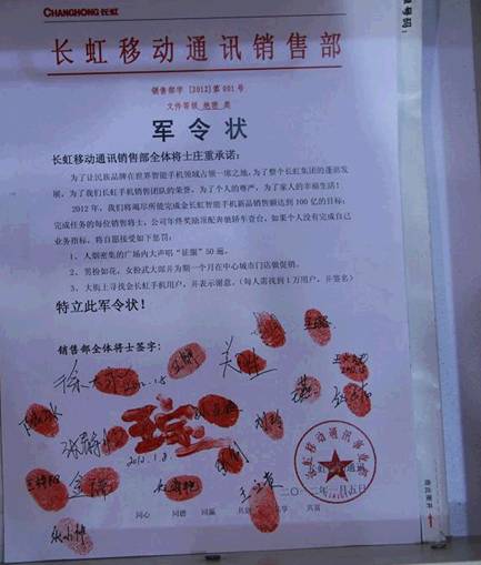 ?? 近日,某知名論壇爆出的一張“軍令狀”又在網(wǎng)絡(luò)中傳播了起來(lái), 這是原帖中的一段話:“2012年某國(guó)產(chǎn)智能手機(jī)要賣(mài)到500萬(wàn)臺(tái),銷(xiāo)售額要達(dá)到100億元!”聽(tīng)到句話我們是不是感覺(jué)耳熟呢?是的,在前兩天的金長(zhǎng)虹智能手機(jī)發(fā)布會(huì)后,正是長(zhǎng)虹集團(tuán)對(duì)其新品智能手機(jī)的前景看好,并發(fā)出了年銷(xiāo)量500萬(wàn),銷(xiāo)售額破百億的豪言壯語(yǔ)。 那么,這個(gè)“軍令狀”和長(zhǎng)虹官方發(fā)布的銷(xiāo)售目標(biāo)又有什么相關(guān)呢??jī)烧叱虽N(xiāo)售目標(biāo)相同,還有“軍令狀”上的標(biāo)頭,在標(biāo)頭上我們能看到“長(zhǎng)虹移動(dòng)通訊銷(xiāo)售部”的字樣。目前,對(duì)于這個(gè)軍令狀的“真假”尚沒(méi)有結(jié)論,但是金長(zhǎng)虹智能手機(jī)破百億的口號(hào)的確是長(zhǎng)虹官方發(fā)出的聲音。金長(zhǎng)虹智能手機(jī)的“百億軍令狀”所憑仗的是什么呢?記者懷著好奇對(duì)其進(jìn)行了深入了解。
