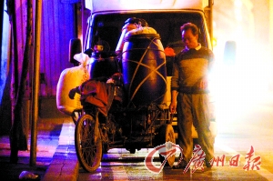 2011年12月4日深夜,一養(yǎng)豬戶從人民中路食肆收集了潲水。2011年12月4日攝。