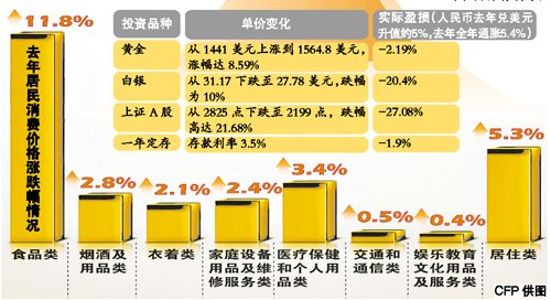 去年CPI同比增5.4% 超過(guò)4%的預(yù)期目標(biāo) CPI 2011年12月CPI同比增4.1% 創(chuàng)15個(gè)月新低;全年食品價(jià)格上漲11.8%,是拉動(dòng)CPI 上行的主要因素。 專家預(yù)測(cè),展望2012年,總體來(lái)看物價(jià)漲幅將比2011年有所回落。受通脹走向降溫,今年貨幣政策和財(cái)政政策都將持續(xù)放松和更為積極。 國(guó)家統(tǒng)計(jì)局昨日發(fā)布報(bào)告,從2011年全年的情況看,我國(guó)CPI比2010年上漲5.4%,高于年初設(shè)定的4%目標(biāo)。2011年12月份全國(guó)居民消費(fèi)價(jià)格總水平(CPI)同比上漲4.1%,為2010年9月以來(lái)最低水平,且為去年7月觸及6.5%的三年高點(diǎn)后連續(xù)第五個(gè)月回落。 專家預(yù)測(cè),受通脹走向降溫,今年貨幣政策和財(cái)政政策都將持續(xù)放松和積極的影響,股市滬綜指昨天微幅收跌,預(yù)計(jì)春節(jié)前大盤將維持震蕩盤升走勢(shì)。 分析: 去年通脹兩頭低中間高 高盛高華中國(guó)宏觀經(jīng)濟(jì)學(xué)家宋宇昨天對(duì)本報(bào)記者表示:去年11月份之前的幾個(gè)月總體需求增速低于趨勢(shì)水平是CPI和PPI通脹率持續(xù)回落的主要原因。 中郵證券宏觀分析師邱云波表示,2011 年食品價(jià)格上漲11.8%,是拉動(dòng)CPI 上行的主要因素。非食品中煙酒、醫(yī)療保健和居住類價(jià)格漲幅也較大(見(jiàn)圖表)。2011年CPI 走勢(shì)呈現(xiàn)兩頭低、中間高的態(tài)勢(shì),自7 月份觸及6.5%的高點(diǎn)后,緊縮政策使CPI 不斷下行。預(yù)計(jì)今年通脹壓力將有所緩解,全年CPI 將回落至3.5%左右;2011 年P(guān)PI上漲了6%。 走勢(shì): 節(jié)日因素本月CPI將反彈 種種跡象顯示,1月中國(guó)的CPI增幅將再度攀升。據(jù)國(guó)家統(tǒng)計(jì)局分析,去年12月份,居民消費(fèi)價(jià)格總水平同比漲幅中的翹尾因素消失,新漲價(jià)因素為4.1個(gè)百分點(diǎn)。進(jìn)入1 月份,農(nóng)業(yè)部的農(nóng)產(chǎn)品批發(fā)價(jià)格指數(shù)也繼續(xù)走高,而商務(wù)部公布的食品價(jià)格擬合環(huán)比也創(chuàng)出了近半年以來(lái)的最高周環(huán)比漲幅,總體來(lái)看,1 月份食品價(jià)格將面臨較大的上漲壓力。 國(guó)務(wù)院研究中心金融研究所副所長(zhǎng)巴曙松昨天也在公開(kāi)場(chǎng)合表示,2012年1月CPI增幅很可能會(huì)出現(xiàn)反彈。國(guó)海證券分析師范小陽(yáng)表示:1 月份由于季節(jié)性因素和春節(jié)因素的影響,CPI 有反彈的可能,初步預(yù)計(jì)在4.2%附近。從歷史上看,1 月的環(huán)比漲幅均明顯高于12 月。但這種由于季節(jié)性和節(jié)日因素影響帶來(lái)的CPI 反彈已經(jīng)在市場(chǎng)的預(yù)料之中,而且從明年上半年的走勢(shì)來(lái)看,CPI 回落的趨勢(shì)并沒(méi)有改變。因此,1 月CPI的擾動(dòng)不會(huì)對(duì)市場(chǎng)造成太大的影響。 盡管年末食品價(jià)格有所抬頭,但中國(guó)12月CPI增速仍連續(xù)第五個(gè)月回落,并創(chuàng)下15個(gè)月新低。通脹如預(yù)期下滑,為政策放寬預(yù)留更多空間。分析師普遍預(yù)計(jì),接下來(lái)政策面還是以微調(diào)為主,存款準(zhǔn)備金率下調(diào)只是時(shí)間問(wèn)題,最早可能在農(nóng)歷春節(jié)前。 預(yù)測(cè): 政策放寬有更多空間 摩根大通首席中國(guó)經(jīng)濟(jì)學(xué)家朱海斌昨天對(duì)本報(bào)記者表示:通脹壓力緩解的正面消息為決策者將政策重點(diǎn)轉(zhuǎn)移至關(guān)注增長(zhǎng)提供更多空間。預(yù)計(jì)春節(jié)前夕,央行會(huì)將存款準(zhǔn)備金率下調(diào)50個(gè)基點(diǎn),很可能在本周內(nèi)下調(diào),以緩和季節(jié)性因素(中國(guó)新年前夕的現(xiàn)金需求以及1月增加的財(cái)政存款)帶來(lái)的流動(dòng)性壓力。未來(lái),貨幣政策將偏向適度寬松。 瑞穗證劵亞洲公司董事總經(jīng)理沈建光表示,今年貨幣政策料將持續(xù)放松,財(cái)政政策將更積極,今年是投資A股的好機(jī)會(huì)。記者陳海玲 專家預(yù)測(cè) 物價(jià)漲幅將進(jìn)一步回落 “4.1%的漲幅在預(yù)料之中,物價(jià)回落態(tài)勢(shì)進(jìn)一步確立?!敝袊?guó)社科院經(jīng)濟(jì)研究所宏觀經(jīng)濟(jì)室主任張曉晶分析判斷,物價(jià)走勢(shì)難以背離中國(guó)經(jīng)濟(jì)增速回落帶來(lái)總需求回落的大勢(shì)。專家們普遍認(rèn)為,隨著中國(guó)經(jīng)濟(jì)增速回落態(tài)勢(shì)的確立,物價(jià)從總體態(tài)勢(shì)看,漲幅將進(jìn)一步回落。但當(dāng)前價(jià)格調(diào)控仍不能掉以輕心,未來(lái)價(jià)格走勢(shì)也存在一定的不確定性。 2011年全年,我國(guó)CPI比上年上漲了5.4%,超出年初4%左右的調(diào)控預(yù)期目標(biāo)。中國(guó)國(guó)際經(jīng)濟(jì)交流中心咨詢研究部副部長(zhǎng)王軍認(rèn)為,這說(shuō)明當(dāng)前我國(guó)面臨較為長(zhǎng)期的溫和通脹的壓力,勞動(dòng)力價(jià)格、資源價(jià)格等成本推動(dòng)壓力將在較長(zhǎng)時(shí)期內(nèi)存在,價(jià)格調(diào)控要做好長(zhǎng)期作戰(zhàn)的準(zhǔn)備。 輸入性通脹因素還存在較大的不確定性。王軍分析,雖然世界經(jīng)濟(jì)不景氣總體上降低了對(duì)大宗商品的需求,美元走強(qiáng)也有利于壓低大宗商品價(jià)格,但伊朗等地緣政治的不確定因素,使得石油價(jià)格仍然存在猛漲的可
