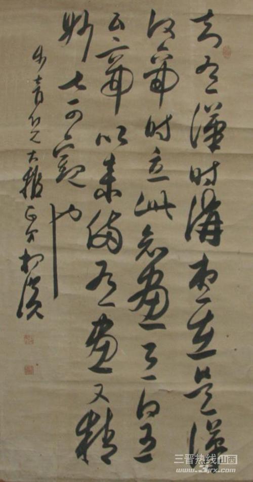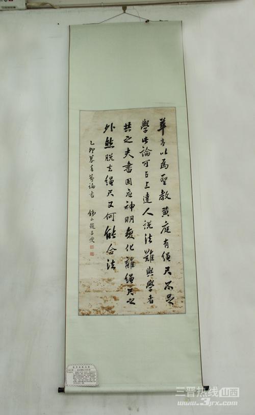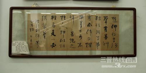 本次展覽展出了我省藏家劉永杰先生多年來個人收藏的我省近現(xiàn)代書法名家202人的近三百幅作品,時間跨度為四百年。此次展覽引起了我省收藏界的關(guān)注并贏得了觀眾的普遍贊譽(yù)。我們?nèi)龝x熱線的編輯采擷了部分作品以饗讀者。 劉永杰先生與三晉熱線副總編合影 劉永杰是山西省人民醫(yī)院職工,他致力于衛(wèi)生宣傳事業(yè)。多年來,他筆耕不輟。同時,他在余暇還熱衷于收藏事業(yè),追尋傳統(tǒng)文化,藏品頗豐。 首先,我們把由他撰寫的文章《三晉的皮殼》推薦給大家。 ? 三 晉 的 皮 殼 “皮殼”并不完全是指僅物理層面的表象,而類似于把玩古董者的行話“包漿”。那是物事在歲月中的沉淀,有物理的氣息暈染,更有人事情感的滄海桑田。 二零一二年元月劉永杰于慕青堂 展出作品: ?? 趙鶴草書橫幅? 趙鶴 (1726年~1813年):榆次東陽人,諸生。他的性格孤高,嗜金石文字,善草書,有時名。據(jù)說他每日揮毫不倦,直至耄年猶作書不輟,可惜流傳較少。