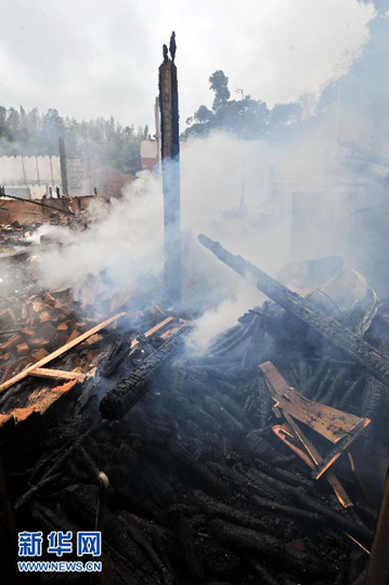 1月16日,福建省建甌市迪口鎮(zhèn)上店自然村被燒毀的民房冒著余煙。新華社記者 張國俊 攝