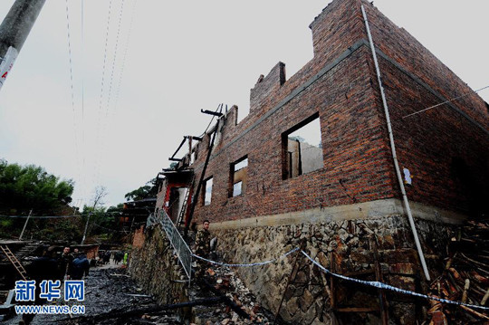 1月16日拍攝的福建省建甌市迪口鎮(zhèn)上店自然村被燒毀的民房。新華社記者 張國俊 攝