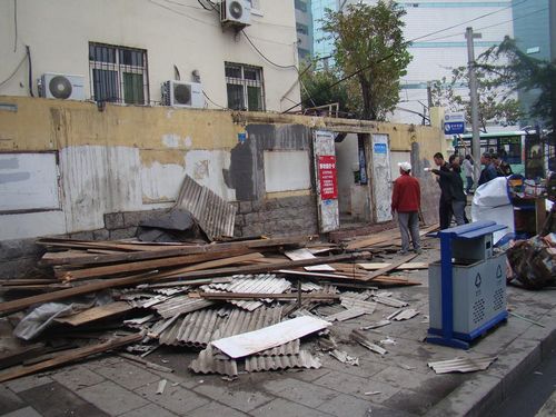 ????3月28日,張杰區(qū)長(zhǎng)來(lái)到現(xiàn)場(chǎng)調(diào)研解決網(wǎng)民關(guān)注的這一問(wèn)題。記者看到,派出所、城管、工商、藥監(jiān)、虎山路辦事處的工作人員都在根據(jù)職能分工,展開整治。城管執(zhí)法人員對(duì)非法占道業(yè)主,逐家下達(dá)了亂搭亂建整改通知,要求在規(guī)定期限內(nèi)自行拆除。