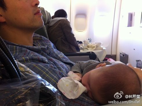 林熙蕾1月17日20:18分發(fā)微博曬女兒和老公的合照,照片中老公楊晨懷里抱著女兒楊若妤,父女倆在機(jī)艙里面酣睡,睡姿十分可愛(ài)。林熙蕾忍不住母性大發(fā)稱贊道:“搭飛機(jī)在爸爸懷抱里睡的好熟?!币粋€(gè)小時(shí)前,楊晨曾于19:23分發(fā)微博透露轉(zhuǎn)機(jī)誤點(diǎn)等了8小時(shí),而一家三口疑似去芝加哥度假。