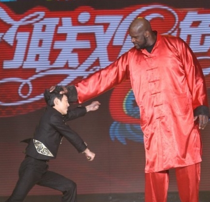 奧尼爾現(xiàn)身長沙,錄制湖南衛(wèi)視小年夜春晚。首次在中國過小年,奧尼爾為觀眾準(zhǔn)備不少精彩節(jié)目,他還在現(xiàn)場學(xué)包餃子說要送給姚明吃。頑皮的奧尼爾還調(diào)戲起何炅來,一手按住何炅的頭,何炅無論怎么伸手踢腿都打不到奧尼爾,場面十分滑稽。網(wǎng)友看到這一幕之后,同情何炅的小矮個,稱何老師太雷了。