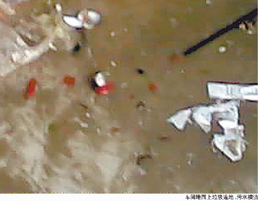 消毒規(guī)范嗎? 1小時(shí)能刷百箱餐具,消毒過(guò)程簡(jiǎn)單 在消毒餐具車間中,整個(gè)消毒程序是這樣的:首先將從飯店回收回來(lái)的一箱一箱的餐具搬上流水線,工人們將餐具清洗干凈然后放到塑料托槽中,通過(guò)傳送帶進(jìn)入到消毒液中浸泡,然后通過(guò)高溫烘干,出來(lái)之后重新裝箱,經(jīng)過(guò)包裝之后再送到各個(gè)飯店。整個(gè)過(guò)程可以簡(jiǎn)單分成4個(gè)步驟:清洗、消毒、烘干、包裝。 從飯店里拉餐具的車大約要中午才能回來(lái),所以上午一般是將前一天晚上沒有包裝完的餐具繼續(xù)包裝完。相對(duì)下午要進(jìn)行的清洗消毒工作來(lái)說(shuō),相對(duì)輕松些。記者在車間旁邊的一個(gè)小房間內(nèi)看到很多塑料桶,中間的一處方形池子邊上積累了厚厚的一層污垢。記者得知這里就是儲(chǔ)存消毒液的地方。記者在門外還看到了很多大桶,標(biāo)簽上寫的是乙氧基化烷基硫酸鈉?!皩?duì)餐具消毒的液體就是這個(gè)和洗潔精混合在一起?!币晃还と藢?duì)記者說(shuō)。 開始清洗消毒工作后,四五名工人都站在流水線起點(diǎn)的兩端,有工人將整箱的臟碟子、臟碗倒在流水線上,然后工人邊進(jìn)行清洗,邊將碟子、碗、杯子等分類,裝在塑料托槽中,一個(gè)一個(gè)放在流水線上。這一區(qū)域是整個(gè)車間里最不干凈的地方,旁邊放著滿是殘羹剩菜的碟子、碗,地上散落的筷子、勺子和各種泔水被浸泡在一層污水之中,令人作嘔。車間門口的沙土地泥濘不堪,污水就在工人們的腳下橫流,一天下來(lái),白鞋變成了黑鞋。 工人的刷洗裝槽的手法非常熟練,一個(gè)碟子或碗在手里停留的時(shí)間不會(huì)超過(guò)3秒鐘。1個(gè)多小時(shí)差不多就能刷出100箱來(lái)。工人們除了手上戴著膠皮手套防止傷手之外,再無(wú)其他防護(hù)措施。 記者進(jìn)車間最大的感覺就是,隨處可以聞到泔水的味道。你幾乎可以在車間的任何地方找到諸如蝦米皮、雞骨頭、魚刺等東西,在烘干裝箱部分的一塊鐵皮桌子下居然還能看到各種剩菜垃圾丟在一起,非常惡心。 流水線上的消毒液也已非常渾濁,機(jī)器還總是出問(wèn)題。記者看到工人用各種工具直接進(jìn)行修理,并沒有采取任何消毒措施,鐵鍬也派上了用場(chǎng)。 在整個(gè)大車間的外面有一處兩面通透的房間,與車間里一樣,這里的地面或案臺(tái)上同樣是骯臟不堪的,甚至要更臟些。記者在這里的地面上看到,污水往一處雨篦子上流去,雨篦子上面及附近殘留著很多泔水殘?jiān)?,走到這里讓人無(wú)處下腳。一位上了年紀(jì)的老師傅時(shí)不時(shí)從池子中舀出一盆水潑到地上,然后用掃帚掃幾下。 “這個(gè)地方是干什么用的?”記者問(wèn)?!斑@個(gè)地方是用來(lái)刷那些勺子和筷子的。”果然,記者在一個(gè)上面有一些泡沫的水池子中看到底部放著一把筷子。“平時(shí)筷子和勺子和其他的餐具分開,就在這里清洗?!惫と烁嬖V記者。所謂的消毒清洗也就是將筷子和勺子浸泡在消毒液和洗潔精混合的溫水中。在車間的一個(gè)角落里,記者看到有幾名工人正在用暖燈將筷子烘干,然后用布將一捆筷子擦干凈,再裝入袋中,工人沒戴口罩、手套,身上的衣服也臟兮兮的。 ◎人物特寫 “春節(jié)不回家,不光我一個(gè)” 老劉(化名)在廠子里工作的時(shí)間并不長(zhǎng),“我才來(lái)了半個(gè)多月?!彼嬖V記者,“反正現(xiàn)在家里沒什么活,出來(lái)打工還能掙點(diǎn)錢?!崩蟿⑹菛|北人,他的老鄉(xiāng)在這個(gè)小廠子里還有好幾個(gè),他們都不回家過(guò)年。 “我已經(jīng)好幾年沒回家了?!薄盀槭裁床换厝ツ??”“回去也沒啥意思,女兒已經(jīng)出嫁了,回去還不如在外面活得好一些?!崩蟿⒄f(shuō),廠子里有好幾個(gè)不回家過(guò)年的,都是因?yàn)榧依餂]什么可以牽掛的才出來(lái)打工,在和老劉的交談中,可以感受到他話語(yǔ)中的些許無(wú)奈。 中午吃飯的時(shí)候,記者跟隨老劉來(lái)到了他住的宿舍,同樣是板房搭建起來(lái)的,里面非常簡(jiǎn)陋,沒有暖氣,狹小的空間里幾名工人擠在一起吃飯。老劉說(shuō),“半個(gè)月了基本上天天吃白菜,都要吃膩了,昨天小年,食堂燉了一只雞,腦袋還沒有我手指甲大?!?/p> 吃完飯后,點(diǎn)燃一支煙,老劉邊吐著煙邊說(shuō):“在家百事好,出門萬(wàn)事難,但我在家待不住,野慣了?!薄凹依镞€有地嗎?”“也有,但是不愿意種,春節(jié)不回家的一般都是沒家沒業(yè)在外邊打工的,在哪過(guò)也就無(wú)所謂了?!?/p> 烘干怎么樣? 烘干后仍濕漉漉的,粘著各種剩菜 車間里的工人一共只有十幾個(gè),記者第一次進(jìn)入車間時(shí),便聞到混合著剩菜剩飯剩海鮮與消毒液的刺鼻氣味。記者被分配在一個(gè)位置上干裝箱的活,后來(lái)記者才知道他們管這一步驟叫做烘干。 令記者不解的是,雖說(shuō)是“烘干”,但烘干后的碟子、碗、杯子依然是濕漉漉的。記者與另外兩名工人配合,站在流水線傳送帶的最末端,從這里向傳送帶里面望去可以清晰地看到里面紅彤彤的,是通過(guò)高溫來(lái)烘干餐具。 記者的主要工作就是將從流水線中出來(lái)的裝在托槽中的餐具進(jìn)行二次挑揀,然后裝入箱中?!斑@個(gè)挑揀的活就看工人了,你不那么仔細(xì)也就那么著了,別人也不知道?!币晃焕瞎と藢?duì)自己