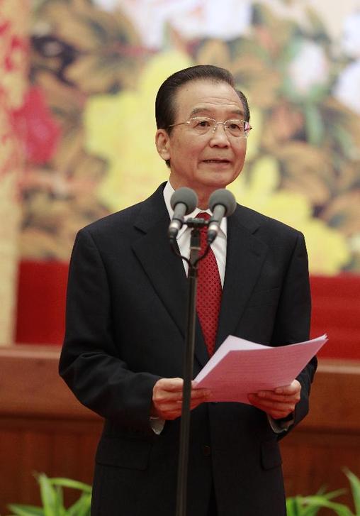 1月21日,中共中央、國(guó)務(wù)大會(huì)堂舉行2012年春節(jié)團(tuán)拜會(huì)。中共中央政治局常委、國(guó)務(wù)院總理溫家寶在團(tuán)拜會(huì)上講話。新華社記者鞠鵬攝