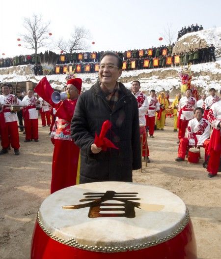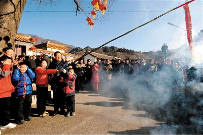 ![]() 圖為2012年1月22日胡錦濤在北京與民眾共迎新春和山村孩子放鞭炮