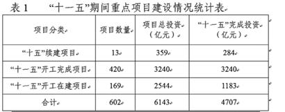 “十一五”期間重點項目統(tǒng)計表