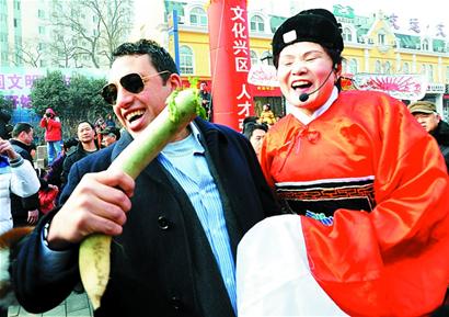 ![]() 2012蘿卜會(huì)·元宵山會(huì)昨天開幕 各地趕會(huì)人齊聚島城 山會(huì)正式拉開大幕,經(jīng)過一天的降雪,昨天一早太陽就露出了臉,這既讓蘿卜會(huì)現(xiàn)場(chǎng)的攤主們松了一口氣,也讓眾多趕會(huì)市民有了一份好心情。早上不到8時(shí),趕會(huì)的市民便陸續(xù)進(jìn)入會(huì)場(chǎng),等到上午10時(shí)許,已經(jīng)是人擠人,一條幾十米長(zhǎng)的街道擠上十幾分鐘才能走到頭。昨天一天,僅趕會(huì)的市民就達(dá)到了39萬人次,而來自各地的大蘿卜更是創(chuàng)紀(jì)錄地賣出了92噸。 8000斤蘿卜雕出“九龍壁” 昨天上午10時(shí)30分,蘿卜會(huì)·元宵山會(huì)開幕式正式開始,由于氣溫低,組委會(huì)特意精選了幾個(gè)最具代表性的節(jié)目,浮山高蹺、跑旱船、舞龍,節(jié)目個(gè)個(gè)精彩。與此同時(shí),蘿卜會(huì)的開場(chǎng)表演“蘿卜雕刻大賽”的比賽現(xiàn)場(chǎng)外也被圍得水泄不通,20多位來自省內(nèi)的雕刻高手集聚一堂,各自展示著自己的技藝。 要說參賽作品,長(zhǎng)7.5米、寬1.3米的“九龍壁”格外顯眼,9條蘿卜雕刻而成的盤龍躍上背景板栩栩如生。記者了解到,這幅“九龍壁”出自青島海帆餐飲服務(wù)職業(yè)學(xué)校6名雕刻高手之手。雕刻師李均峰告訴記者,今年是龍年,因此在準(zhǔn)備參賽作品時(shí)他就和同事們研究一個(gè)龍的題目,他們特意到北京、山西等地考察,最后決定以北京故宮壽宮門前的九龍壁為原型。 “我們6個(gè)人用了6天時(shí)間才完成了這個(gè)作品。”李均峰說,雕刻蘿卜原材料很重要,大家分頭采購,從各地購買了青蘿卜、白蘿卜和胡蘿卜好幾個(gè)品種。由于雕刻過程中容易出現(xiàn)失誤,等到9條龍全部雕刻完成,整整耗費(fèi)了8000多斤蘿卜?!跋M蠹叶寄茉邶埬晷写筮\(yùn),生活蒸蒸日上?!崩罹逭f。 蘿卜賣出92噸 昨 天,記者在 蘿卜會(huì)·元 宵山會(huì)現(xiàn)場(chǎng)看 到,為了給蘿卜這 一山會(huì)的 “主角”騰 位置,主辦方把沾化路 東段街道全部騰出,用來停放運(yùn)載、銷售蘿卜的貨車,加上幾家搭著帳篷的蘿卜商家,整條路被蘿卜攤位擠得滿滿當(dāng)當(dāng)。 “水果蘿卜,正宗濰縣蘿卜,先嘗后買,吃一次想一年?!痹俅蝸淼脚R沂人神合富的蘿卜車前,他正站在車上喊著號(hào)子招攬生意,妻子則負(fù)責(zé)在車前稱重收錢。神合富告訴記者,從昨天早晨8時(shí)許,就有不少市民趕到了文化街,生意也就跟著火了起來,一上午功夫他已經(jīng)賣掉了1000多斤。記者在神合富的蘿卜車前站了一會(huì),只見這個(gè)要6根,那個(gè)要8根,眼看著一整排蘿卜見了底,神合富忙活得出了汗,干脆脫下外套吆喝起來。 神合富的濰縣蘿卜賣得歡,旁邊一家萊西本地蘿卜攤的生意也不差,1.5元一斤,比濰縣蘿卜便宜了0.5元,攤主一邊讓過路的市民嘗鮮,一邊可勁地宣傳著自己的蘿卜“水分大、甜不辣”。昨天下午,記者從組委會(huì)了解到,蘿卜會(huì)·元宵山會(huì)頭一天就有39萬人次趕會(huì),一共銷售蘿卜92噸。 一早從嶗山來趕會(huì) 昨天,蘿卜會(huì)·元宵山會(huì)的開幕式演出定在10時(shí)30分開始,可不到9時(shí),眾多市民已涌入了山會(huì)主會(huì)場(chǎng)昌樂路文化街,尤其是小吃街,幾乎每個(gè)攤位前都有人排隊(duì)等候,爭(zhēng)著把鈔票塞進(jìn)攤主 的手里。 64歲的孫大媽昨天一早就帶著7歲的小孫子,從嶗山沙子口南姜坐車趕到青島文化街逛山會(huì)。 孫大媽說,她以前就住在利津路,之前蘿卜山會(huì)主會(huì)場(chǎng)還在道口路時(shí)她就每年都去,如今自己隨兒子搬去了嶗山區(qū)住,她一樣回來趕廟會(huì)。 在山會(huì)上,孫大媽給小孫子買了烤肉、桂花糕、撒尿牛丸等各種小吃,當(dāng)然大蘿卜也沒落下。孫大媽說,蘿卜哪都有賣的,可趕了一趟蘿卜會(huì)不買幾根大蘿卜豈不是白來,于是花了9元錢買了4根蘿卜回家啃。 趕節(jié)路上跑了25年 說到節(jié)會(huì),市民最先想到的一定是小吃,在各種小吃中,烤肉成了重頭戲,新疆烤肉、內(nèi) 蒙古烤肉、巴西烤肉……攤主們用各民族 最具特色的方式吸引著市民。要說表演最敬業(yè)的得數(shù)內(nèi)蒙古烤肉攤的巴扎,將近50歲的草原漢子伴隨著音樂扭動(dòng)著身子,手 里的烤肉可一點(diǎn)不耽誤。 巴扎漢語不太好,所以漢族小伙鄭大林成了他身邊最得力的助手。鄭大林告訴記者,巴扎是個(gè)名副其實(shí)的趕節(jié)人,從20多歲開始四處趕節(jié)會(huì),如今已經(jīng)25年,每年從大年初一開始,巴扎就和四五個(gè)同伴一起先趕到北京參加廟會(huì),之后根據(jù)提前采集到的信息,趕赴下一個(gè)會(huì)場(chǎng)。“照這個(gè)勢(shì)頭今天能賣掉一噸肉?!编嵈罅质掷锏囊淮蟀芽救鈩倓偡诺娇炯苌希芸炀捅环譀]了。 今天活動(dòng) 健身球展演: 美林富地廣場(chǎng) 即墨路社區(qū) 太極展演:美林 富地廣場(chǎng) 膠州路社區(qū) 元宵菜品制作比賽:壽光路3號(hào)院內(nèi) 壽光路社區(qū) 非物質(zhì)文化遺產(chǎn)高蹺展演活動(dòng):六小區(qū)文化廣場(chǎng) 浮山新區(qū) 街道辦事處 |
