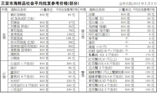 三亞市海鮮品社會平均批發(fā)參考價格(部分)公布日期:2012年2月2日 三亞市物價局2日公布了三亞海鮮品社會平均批發(fā)參考價格,作為海鮮排檔銷售價格的計算依據(jù),市民游客可根據(jù)公示價格計算出最高銷售價格。若發(fā)現(xiàn)海鮮排檔不按最高銷售價格標價,可撥打電話向物價部門投訴。 據(jù)了解,此次公布的海鮮品社會平均價格包括魚類、螺貝類、蝦類、蟹類共近70個品種。按照規(guī)定,海鮮排檔餐飲業(yè)經(jīng)營者海鮮品的購進價格在不高于社會平均批發(fā)參考價格10%的幅度內(nèi)確定。 根據(jù)三亞市2011年出臺的《海鮮排檔餐飲海鮮品平均差價率管理規(guī)定》,三亞市政府規(guī)定今年春節(jié)期間海鮮排檔餐飲海鮮品平均差價率為:魚類190%、螺貝類160%、蝦類和蟹類均為90%。按照計算方法:某餐飲海鮮銷售最高價格=某海鮮品購進價格×(1+差價率),可計算出該海鮮品種的最高售價。 三亞市物價部門有關(guān)負責人介紹,經(jīng)營者制定的價格不得超出平均差價率合理幅度上限,一旦出現(xiàn)超出上限的情況,即被視為牟取暴利行為,物價部門有權(quán)對這種行為作出處罰。 三亞市物價部門提醒,市民游客可以通過這種換算公式,來計算海鮮排檔是否存在違規(guī)漲價、價格欺詐等不正當價格行為,如果發(fā)現(xiàn)可將消費憑證交由物價部門,或撥打12358投訴電話進行舉報,以便盡快查處。據(jù)新華社 |