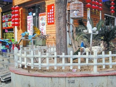 孔雀就養(yǎng)在臨街的小院中 圖/武漢晚報(bào) 本報(bào)訊(見習(xí)記者萬凌)“我只在動(dòng)物園里見過孔雀,沒想到在武漢街頭就目睹了一次孔雀開屏。太罕見了!”昨日,浙江的王小姐向本報(bào)報(bào)料,難掩興奮之情。 王小姐稱,春節(jié)期間她和朋友來漢旅游,昨天上午經(jīng)過南京路,看到一家餐館門前有孔雀、鴛鴦等珍貴禽鳥,一時(shí)激動(dòng)不已,但又擔(dān)心它們會(huì)不會(huì)有性命之憂? 昨日,記者來到南京路,找到王小姐所說的餐館,看見外面的人行道上被低矮的柵欄圍起一個(gè)院子,五只孔雀和上十只鴛鴦在里面散步或休憩,三只金剛鸚鵡也被鎖在門口的鐵架上,時(shí)而發(fā)出鳴叫。餐館門上還貼了一張告示,寫著“請(qǐng)愛護(hù)小動(dòng)物,勿喂食挑逗,咬傷自負(fù)”。路人紛紛駐足圍觀并拍照。記者走進(jìn)餐館,發(fā)現(xiàn)菜單上都是些家常菜。 圍觀的市民劉先生說,去年偶然路過該餐館就見過這些鳥,品種和數(shù)目跟現(xiàn)在差不多。 記者昨聯(lián)系上餐館老板,他自稱曉斌,對(duì)于寵物鳥被圍觀一事,表現(xiàn)得十分淡定。據(jù)介紹,他養(yǎng)鳥近十年,大部分是從國外引進(jìn)的品種,白天放在餐館外面,是為了營造親近自然的氛圍,但的確有人被它們吸引后進(jìn)去消費(fèi)。他稱已為其辦理了合法手續(xù)。 個(gè)人能否在公共場所飼養(yǎng)珍貴禽類?對(duì)此,市林業(yè)局相關(guān)工作人員表示,根據(jù)《中華人民共和國野生動(dòng)物保護(hù)法》的規(guī)定,禁止任何單位和個(gè)人非法獵捕或者破壞國家保護(hù)野生動(dòng)物及其生存環(huán)境,馴養(yǎng)、繁殖、運(yùn)輸國家重點(diǎn)保護(hù)野生動(dòng)物需持有許可證,個(gè)人不宜在戶外馴養(yǎng)珍稀動(dòng)物。 |