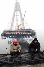 ![]() ????備受青島和海陽(yáng)市民關(guān)注的海陽(yáng)至即墨跨海大橋 (以下簡(jiǎn)稱海即大橋)又有新進(jìn)展,記者昨天從煙臺(tái)相關(guān)方面獲悉,海陽(yáng)市委書記王玉波在接受當(dāng)?shù)孛襟w記者采訪時(shí)表示,海即跨海大橋?qū)⒂?月底正式通車,到時(shí)青島和海陽(yáng)的市民只需5分鐘就能互通到達(dá)兩地。據(jù)悉,大橋開通后將全部免費(fèi),方便市民出行。 ????還差最后30米 ????“主體工程已經(jīng)全部完工,最后30米的橋面合龍后就通車了?!弊蛱焐衔?,記者來到即墨栲栳島碼頭的大橋施工現(xiàn)場(chǎng)看到,幾十名工人正冒雨在30多米高的橋面上施工,在離橋頭約600米處,還有約30米的橋面正在合龍。海即大橋即墨段項(xiàng)目部雷經(jīng)理告訴記者,春節(jié)前,大橋主體工程已經(jīng)全部完工,剩下的最后30米橋面也正在抓緊施工。為了盡快通車,橋面上的護(hù)欄、照明等工程也同時(shí)展開,按照工期安排,再有兩個(gè)月時(shí)間,大橋?qū)⑷亢淆?,橋面工程也進(jìn)行的差不多了。記者站在高約30米的大橋上看到,海即大橋十分壯觀。雷經(jīng)理說,這是大橋最高的位置,站在這里,如果不是陰天,海陽(yáng)和即墨的建筑可以看得很清楚,特別是丁字灣的風(fēng)光盡收眼底。到時(shí),海陽(yáng)和青島將連在一起,這里將成為旅游觀光的勝地。 ????有利于景點(diǎn)整合 ????據(jù)了解,海陽(yáng)市共有230公里的海岸線,通過大橋與青島連接后,對(duì)海洋藍(lán)色經(jīng)濟(jì)發(fā)展將起到快速發(fā)展作用。除此以外,跨海大橋及山東沿海濱海公路的建設(shè),將沿海港口有機(jī)串聯(lián)起來,提高綜合運(yùn)輸效益,也將完善路網(wǎng)結(jié)構(gòu)體系,構(gòu)筑觀光旅游大通道,促進(jìn)旅游開發(fā)和旅游事業(yè)的發(fā)展。尤其是作為聞名全球的旅游勝地青島,將為海陽(yáng)的發(fā)展帶來無限前景,其眾多景點(diǎn)將充分整合起來。(記者 康曉歡 攝影報(bào)道) ????新聞內(nèi)存 跨海大橋耗資5億 ????據(jù)介紹,海陽(yáng)至即墨跨海大橋工程,由海陽(yáng)政府出資5億元建設(shè),采用雙塔雙索面混凝土斜拉橋,橋面寬度24.5米,4車道,主橋跨徑為376米,總跨度約3.3公里。其中煙臺(tái)海陽(yáng)段2.17千米,即墨段1.13千米。海陽(yáng)至即墨大橋,位于黃海與丁字灣交接的丁字河口處,從海陽(yáng)辛安鎮(zhèn)姜家莊村向南經(jīng)1.38公里連接鴨島(海中島嶼),從鴨島向南經(jīng)1.92公里至即墨豐城鎮(zhèn)栲栳碼頭。 |
