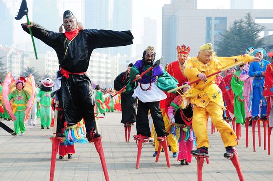 嶗山非物質(zhì)文化遺產(chǎn)節(jié),市民在猜燈謎 黃島元宵節(jié)花燈巡游 城陽民間藝術(shù)節(jié) 青島新聞網(wǎng)2月7日訊 元宵節(jié)前后的青島格外熱鬧,各區(qū)的民俗活動都在火熱開展,強(qiáng)力挑戰(zhàn)四方糖球會的霸主地位。 如果說糖球會的亮點(diǎn)在“吃”上,那嶗山、黃島、城陽的民俗活動更著重于“看”和參與。欣賞舞龍、舞獅比賽,參與燈謎競猜,領(lǐng)略農(nóng)村古樸的過年習(xí)慣,這個(gè)春節(jié)的民俗活動令人“目不暇接”。 青島年度民俗盛會嶗山非遺節(jié)2月5日上午盛大開幕。2月5-2月9期間,市民們可以到嶗山世紀(jì)廣場(區(qū)政府對面)現(xiàn)場感受民俗魅力,欣賞各地絕活演出;元宵節(jié)前后,黃島區(qū)在區(qū)管委對面的廣場上將舉行盛大的民俗慶?;顒樱忻駛兛梢孕蕾p到花車巡游、舞獅等精彩節(jié)目;城陽區(qū)第十八屆民間藝術(shù)節(jié)1月29日開幕,將持續(xù)到元宵節(jié)以后。將在全區(qū)八個(gè)街道分設(shè)會場,為居民送上精彩節(jié)目。閉幕式是本屆民間藝術(shù)節(jié)的集中展示時(shí)間,將有民間大鼓、傳統(tǒng)高蹺、現(xiàn)代歌舞等節(jié)目紛紛亮相。(青島新聞網(wǎng)記者 龐為) |
