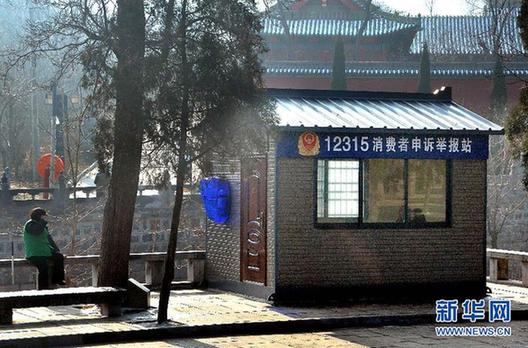 一名環(huán)衛(wèi)工人坐在少林寺對面一座消費者申訴舉報站旁歇息(2012年1月31日攝)。自2011年底全國旅游景區(qū)質(zhì)量等級評定委員會對嵩山少林景區(qū)下達了限期整改通知后,景區(qū)的旅游市場受到很大影響,今年元月份,景區(qū)游客人數(shù)和門票收入都有較大幅度的下滑。據(jù)登封市旅游局的一份統(tǒng)計數(shù)據(jù)顯示,今年春節(jié)期間少林景區(qū)游客接待量為6.1萬人次,比2011年同期下降了41.8%,門票收入則下降了13.7%。(新華社記者王頌 攝) |