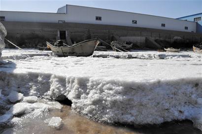 ![]() ????昨天,開(kāi)發(fā)區(qū)紅石崖街道大殷村沿海一帶的風(fēng)力達(dá)到7級(jí),??吭诖a頭上的12條漁船被吹翻,50余條漁船被海冰包圍,海冰最厚處達(dá)到半米。黃島公安分局紅石崖邊防所的民警緊急出動(dòng),記者也參與其中,幫漁民將被吹翻的船正過(guò)來(lái),然后再將其他漁船邊的海冰清除,防止?jié)O船被破壞。 ????氣溫持續(xù)降愁壞養(yǎng)殖戶(hù) ????記者昨天在膠南市新建村前海域看到,正值落潮,淺灘上殘留的海水都結(jié)冰了,大約有幾百平方米,將幾條停在碼頭上的漁船都凍住了。記者順著海邊往西走了百余米,這里是一片海參鮑魚(yú)養(yǎng)殖區(qū),記者看到,養(yǎng)殖池里并沒(méi)有結(jié)冰,幾只海鷗正悠閑地浮在池水上。 ????“幾天前這里曾經(jīng)結(jié)過(guò)一次薄冰,好在又暖和了幾天,結(jié)冰現(xiàn)象沒(méi)有持續(xù)下去,雖然今天很冷,但是只要不持續(xù)降溫,我們就不怕?!毙陆ù屦B(yǎng)殖戶(hù)高先生告訴記者,他們最擔(dān)心的就是天會(huì)一直冷下去,如果低溫大風(fēng)天氣再持續(xù)三四天,冰層會(huì)越來(lái)越厚,海參就會(huì)被凍死或者憋死,那樣損失就大了。 ????12條小漁船被大風(fēng)吹翻 ????昨天上午9時(shí)許,記者和紅石崖邊防派出所民警趕到紅石崖街道大殷村海域看到,膠州灣大橋兩側(cè)海面上結(jié)起海冰,最厚冰層達(dá)10余厘米。記者等人又往東走發(fā)現(xiàn),時(shí)至低潮,距岸邊百余米處的12條小漁船被大風(fēng)吹翻,幾名漁民正在試圖將船正過(guò)來(lái),但是因?yàn)槿耸植粔?,只能干著急?/p> ????“我們一起去幫漁民把船翻過(guò)來(lái)吧?!奔t石崖邊防派出所董干事說(shuō)。隨后,記者和紅石崖邊防所的5名民警穿上水褲,扛著鐵鍬向翻船位置走去。此時(shí)溫度達(dá)到零下9度,風(fēng)力7級(jí)。剛開(kāi)始,記者感覺(jué)寒風(fēng)刺骨,刮在臉上非常疼,等走到翻船處的時(shí)候,臉已經(jīng)麻木,沒(méi)有什么感覺(jué)了。 ????漁民殷增偉正和妻子、鄰居站在翻船前直皺眉,看到記者和民警過(guò)來(lái),殷增偉的臉上樂(lè)開(kāi)了花,“太感謝你們了,這船如果不正過(guò)來(lái),再漲潮時(shí)發(fā)動(dòng)機(jī)就被泡壞了?!币笤鰝フf(shuō)。“那邊還有11條翻船呢,船主不在,咱們都幫著他們正過(guò)來(lái)吧。”董干事說(shuō),隨后,警民一起忙活了一個(gè)多小時(shí),將翻船全部正好。 ????警民聯(lián)手鏟冰救漁船 ????上午11時(shí)左右,記者和民警又往東走了200多米,發(fā)現(xiàn)這里的淺灘上50余條漁船被海冰凍住,幾名漁民正用鐵鍬清除漁船周?chē)暮1?。記者注意到,這里冰層最厚處達(dá)到半米,非常驚人?!斑@里的冰層原本沒(méi)有這么厚,今早漲潮的時(shí)候,海冰被泡軟了,落潮后又被大風(fēng)吹到淺灘上,因?yàn)闅鉁氐停芸煊謨鲎×??!奔t石崖街道大窯村漁民老陳告訴記者,他們村50多條漁船都停在這里的淺灘上,結(jié)果全被凍住了。“這個(gè)冬天太冷了,我們這里的漁船已經(jīng)是第三次被凍住了,這些日子我們也顧不上干別的,抽空就到海邊看看,一旦漁船被凍住了,就得趕緊除冰,你別看這些海冰很脆,但是對(duì)漁船的危害特別大?!崩详愓f(shuō)。 ????隨后,記者和民警一起又忙活了一個(gè)多小時(shí),幫漁民將漁船周?chē)暮1P除,然后將碎冰塊運(yùn)到岸邊。董干事告訴記者,自2011年12月下旬至2012年2月上旬,膠州灣遭遇海冰災(zāi)害,截至昨天,轄區(qū)先后有大約200艘漁船被凍住。為此,所里組織民警幫助養(yǎng)殖戶(hù)除冰,維修凍壞的漁船,把損失降到了最低。(記者 趙玉勛 通訊員 董曉偉) ????【動(dòng)態(tài)】 ????鰲山灣 海冰剛?cè)诨?又被凍住了 ????昨天上午,記者在即墨市鰲山衛(wèi)鎮(zhèn)神湯溝海邊看到,上百艘漁船??吭诤┥希瓉?lái)出現(xiàn)的海冰已經(jīng)隨著氣溫的回升融化了一部分,但沒(méi)等融化完,新一輪的降溫來(lái)襲,海冰又要將漁船封住了。 “聽(tīng)說(shuō)又要降溫了,這下出海捕撈又成泡影了?!睗O民于志福告訴記者,本來(lái)打算這兩天就出海捕魚(yú),但現(xiàn)在看,漁船被凍在海冰里,出海基本無(wú)望了。記者在現(xiàn)場(chǎng)看到,盡管原來(lái)的海冰大部分已經(jīng)融化,但在海邊還有大量的海冰凍得很結(jié)實(shí),幾十艘漁船還是被牢牢凍在冰里。(記者 康曉歡) ????萊西湖 湖面被冰封 可以開(kāi)汽車(chē) ????伴著大風(fēng),萊西氣溫跌至-13.4℃,萊西湖面全部被冰封,最厚冰層達(dá)到20厘米以上,是歷年來(lái)冰層最厚的一年。記者在湖面上行走就像是走在馬路上。據(jù)萊西湖管理局工作人員介紹,湖面周邊冰層最厚,有的地方可以開(kāi)車(chē)行走,但為了安全,提醒市民不要在冰上停留。據(jù)即墨氣象局預(yù)報(bào),今天,萊西將再度大幅降溫,隨著氣溫在低位持續(xù)徘徊,湖面冰層厚度還有可能繼續(xù)增加。相關(guān)專(zhuān)家稱(chēng),如果氣溫慢慢回升,萊西湖厚厚的冰層也需半個(gè)月以上才能融化。 ????萊西湖管理局相關(guān)負(fù)責(zé)人告訴記者,冬季湖面結(jié)冰后,也是一些不法分子偷偷鑿洞捕魚(yú)的好時(shí)機(jī)。記者在湖面上看到,厚厚的冰層上隨處可見(jiàn)一串串密集的腳印。據(jù)了解,冬季湖面結(jié)冰,導(dǎo)致水下魚(yú)兒缺氧,當(dāng)某一區(qū)域冰塊被砸開(kāi)以后,魚(yú)