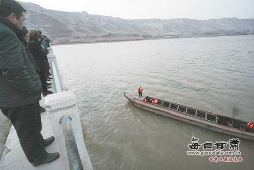 急調(diào)采砂船在河面上展開(kāi)搜救。(本報(bào)記者裴強(qiáng)攝)