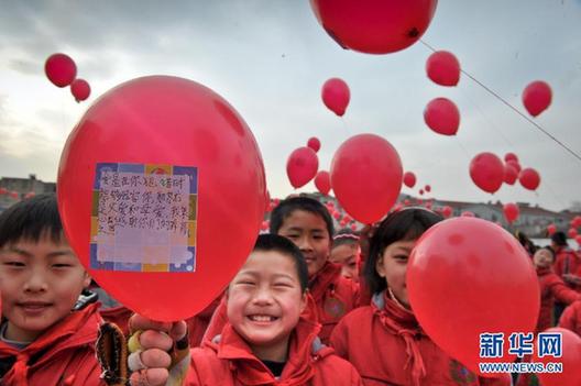 當(dāng)日是不少中小學(xué)寒假過(guò)后開(kāi)學(xué)第一天,安徽省合肥市蜀山區(qū)蜀山小學(xué)千余名學(xué)生集體放飛寫有感恩話語(yǔ)的氣球。(新華社記者 郭晨攝)