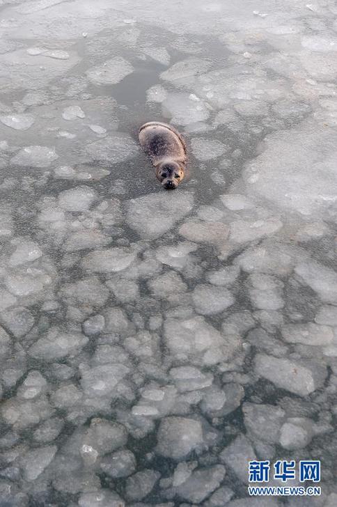 煙臺持續(xù)低溫水結(jié)冰 海豹冰塊中游泳(組圖)