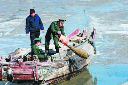 2月8日,青島公安局黃島分局抗海冰應急隊員在幫助漁民殷增所清理漁船積水。俞方平 韓光亮 攝 受新一輪寒潮的影響,膠州灣海面近日再次出現(xiàn)連片浮冰。生成海冰的區(qū)域集中在水深較淺的開發(fā)區(qū)紅石崖海域,這一區(qū)域已經出現(xiàn)綿延數(shù)百米的冰面,一些停泊在岸邊的漁船也被凍結在海面上。 附近漁民表示,與往年相比,今年海冰影響是最輕的一年。雖然連續(xù)兩天出現(xiàn)低溫天氣,但正好遇上大潮期。潮水和風浪在很大程度上緩解了海冰的出現(xiàn)。 昨天開始,青島地區(qū)氣溫回升,海冰情況將得到進一步緩解。(韓光亮 俞方平) |