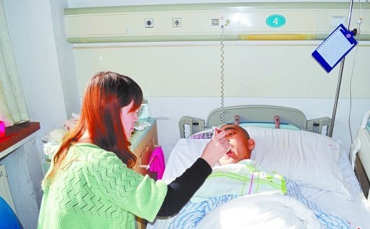冷瑞雪在醫(yī)院照顧受傷的丈夫。 “去年平安夜,丈夫說(shuō)好了要回家給我們娘倆做飯,可沒(méi)想到,在回家的路上出了車禍……”事情雖然已過(guò)去近兩個(gè)月,冷瑞雪仍不敢回憶那一幕,“醫(yī)生說(shuō)他可能會(huì)變成植物人,我和家人在他床邊整整喊了7天,丈夫才醒過(guò)來(lái)。情人節(jié)我什么也不想要,只希望丈夫能夠好起來(lái)”。由于傷情嚴(yán)重,冷瑞雪的丈夫目前仍然在青醫(yī)附院住院,今年的情人節(jié)也要在病房里度過(guò)。 平安夜丈夫突遇車禍 2011年12月24日也就是去年平安夜的下午6時(shí),膠州市民冷瑞雪接到丈夫劉琦打來(lái)的電話。“他說(shuō)晚上他回家做菜,全家熱熱鬧鬧地過(guò)一個(gè)平安夜?!崩淙鹧┱f(shuō),難得丈夫要下廚 ,她心里美得很 ,放下電話,趕緊準(zhǔn)備材料,還專門去菜市場(chǎng)買了兩條魚。 “準(zhǔn)備好材料后,我和女兒坐在家里等他,沒(méi)想到等了半小時(shí),等來(lái)了醫(yī)院的電話,說(shuō)他出車禍了。當(dāng)我們匆忙趕到醫(yī)院時(shí),醫(yī)生告訴我們他傷到了頭部,腦干有損傷并且很嚴(yán)重,渾身多處骨折?!崩淙鹧┱f(shuō),她聽到這個(gè)消息時(shí)差點(diǎn)昏迷過(guò)去,“他可是我們家的頂梁柱,是我的精神依靠啊”。隨后,冷瑞雪見到了躺在病床上的丈夫,昔日高大強(qiáng)壯身上到處都是傷,面部已然全非。由于腦部受傷,丈夫仍處于昏迷狀態(tài),望著這個(gè)與自己攜手走過(guò)6年的人,冷瑞雪心里冷到了極點(diǎn)。 連喊七天,丈夫醒了 膠州人民醫(yī)院的醫(yī)生告訴冷瑞雪,她丈夫劉琦受傷非常嚴(yán)重,并且腦干部位受了傷,有可能醒不過(guò)來(lái);即使醒過(guò)來(lái),也有可能變成植物人。冷瑞雪不敢相信這樣的現(xiàn)實(shí)?!澳嵌稳兆?,我以淚洗面,一遍一遍地叫著老公的名字,給他聽歌,說(shuō)以前我們戀愛時(shí)的情話,說(shuō)女兒出生時(shí)的樣子,說(shuō)我們戀愛時(shí)從沒(méi)有說(shuō)過(guò)的"我愛你",那段時(shí)間我都記不得說(shuō)了多少次,后來(lái)我慢慢地發(fā)現(xiàn)我每次和他說(shuō)話,丈夫的眼角都濕濕的,我知道他能聽得到,更知道他一定會(huì)醒來(lái)。”冷瑞雪說(shuō)。 連續(xù)7天,冷瑞雪一直守在丈夫的病床邊,吃不下飯,喝不進(jìn)水,睡不著覺?!爱?dāng)時(shí)覺得時(shí)間特別漫長(zhǎng),天一放明就害怕,一天又過(guò)去了,丈夫還沒(méi)有醒來(lái)。”冷瑞雪在丈夫身邊守了7天后,奇跡終于發(fā)生了,2011年12月31日下午,丈夫緩緩地睜開了眼睛?!搬t(yī)生說(shuō)這是個(gè)奇跡,像他這樣的病人,這么快醒過(guò)來(lái)非常罕見?!?/p> 采訪過(guò)程中,冷瑞雪的婆婆還向記者透露了一個(gè)細(xì)節(jié):那是還在膠州醫(yī)院的時(shí)候,劉琦做手術(shù)要輸血,醫(yī)院說(shuō)血庫(kù)告急,沒(méi)有那么多O型血。現(xiàn)在實(shí)行了一個(gè)互助獻(xiàn)血制度,親人要用血,家人就要去獻(xiàn)。由于他們年齡都過(guò)了,醫(yī)院只同意冷瑞雪去?!矮I(xiàn)了四百毫升,血站的醫(yī)生一再告誡她要多喝水,不要陪床了要好好休息,可是那時(shí)的小冷根本就顧不上回去休息,當(dāng)晚就陪的床,早上起來(lái)去廁所差點(diǎn)暈倒?!?/p> “老婆,你受累了” 重傷醒來(lái)的劉琦,面部各器官的功能都沒(méi)有恢復(fù),腿上還打著鋼板,吃喝拉撒全在床上。“他的嘴里還有傷口,牙齒是用專門的器具固定著的,只能吃流食,并且不能吃一點(diǎn)咸。”1月7日下午,記者在青醫(yī)附院第一住院部8樓1病房看到冷瑞雪,她正在給丈夫泡餅干,泡好后一點(diǎn)一點(diǎn)喂給丈夫。 劉琦要在青醫(yī)附院住院15天,也就是說(shuō),他們今年的情人節(jié),要在床上度過(guò)。不過(guò)即使在醫(yī)院里,這對(duì)患難夫妻身上也能看到感人的愛情。“醒來(lái)的老公不會(huì)說(shuō)話,但是他會(huì)翹起嘴巴親親我,這是愛情。站在青醫(yī)附院8樓陽(yáng)臺(tái)看海上船只,告訴老公今天海上有霧,這也是愛情。只要他活著,有他的地方就是我的天堂。這個(gè)情人節(jié),我什么也不想要,就希望丈夫能夠盡快好起來(lái)?!?/p> “老婆,你受累了?!泵娌扛髌鞴俟δ苋晕椿謴?fù)的劉琦聽著冷瑞雪的訴說(shuō),嘴里艱難地?cái)D出這一句話,臉上已經(jīng)全是淚水。目前,冷瑞雪為了給丈夫治病,已經(jīng)花光了家里4萬(wàn)元的積蓄,還借了16萬(wàn)元。冷瑞雪告訴記者,丈夫單位在他出事前的兩個(gè)月,沒(méi)有給他交保險(xiǎn),住院費(fèi)不能報(bào)銷,現(xiàn)在家里經(jīng)濟(jì)條件非常困難,但她會(huì)想盡辦法幫丈夫治傷。如果有熱心市民愿意對(duì)這對(duì)感人的年輕夫婦伸出援手,可以撥打當(dāng)事人的電話15105328396聯(lián)系他們。(記者 肖良華 連茂明 實(shí)習(xí)生 李雯鳳) |