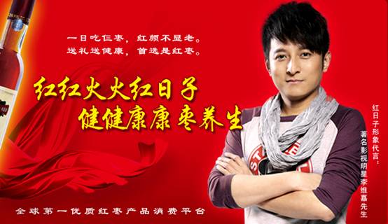 北京紅日子果業(yè)有限責(zé)任公司,隸屬百蓮凱集團(tuán)旗下企業(yè)。企業(yè)產(chǎn)業(yè)鏈涉及紅棗種植、加工、研發(fā)及銷售。通過資源整合,紅日子公司聯(lián)合國(guó)內(nèi)外諸多大型紅棗生產(chǎn)及深加工企業(yè)達(dá)成合作,匯集全球優(yōu)質(zhì)紅棗資源于一體,致力于打造全球第一優(yōu)質(zhì)紅棗產(chǎn)品消費(fèi)平臺(tái)。 紅日子以“弘揚(yáng)棗文化,健康中國(guó)人”為企業(yè)宗旨,志在為推動(dòng)中國(guó)紅棗事業(yè)的健康發(fā)展,為提高人們的健康生活水平及為推進(jìn)社會(huì)的和諧發(fā)展作出應(yīng)有的貢獻(xiàn)。 紅日子特別邀請(qǐng)了湖南衛(wèi)視《快樂大本營(yíng)》著名主持人,中國(guó)影視明星李維嘉先生出任代言人。
