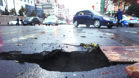 ![]() 路面中突然出現(xiàn)的大坑長約1米、寬約0.5米,過往車輛稍不注意很容易掉進去。 ????2月12日下午,鎮(zhèn)江路與延吉路交會處的路面突然出現(xiàn)了一個長一米多、寬半米、深一米多的大坑,周圍的交通也因此受到影響。事發(fā)后,自來水公司以及市排水管理處的搶修人員迅速趕赴現(xiàn)場查看,初步認定是一根直徑為400毫米的污水管道漏水,將下面的泥沙沖刷掉后形成的塌陷。采訪中,市排水管理處的搶修人員表示,他們會連夜進行搶修。截至記者發(fā)稿時,搶修工作還在進行中。 ????馬路上突然出現(xiàn)大窟窿 ????“延吉路與鎮(zhèn)江路交會處的路面上出現(xiàn)了一個大坑,過往車輛不注意的話很容易掉進坑里?!?月12日下午,記者聞訊后立即趕到事發(fā)現(xiàn)場。此時,自來水公司以及市排水管理處的搶修人員都已經(jīng)趕到現(xiàn)場查看。記者看到,這個大坑恰好處在路口處,大坑長一米多,深一米多,最寬的地方達半米。另外,周圍已經(jīng)設(shè)置上了警示標志,防止過往的車輛繼續(xù)碾壓。 ????“當時大約是下午 4時30分,有一輛車剛經(jīng)過后,路面接著就出現(xiàn)了這個大坑?!辈稍L時,圍觀者吳先生告訴記者,旁邊是延吉路農(nóng)貿(mào)市場,事發(fā)時他正準備到農(nóng)貿(mào)市場買菜,“大坑就處在一段斑馬線上,還不斷向外冒熱氣,而且還能看到水流動”。 ????管道漏水沖得只剩瀝青 ????見狀后,吳先生立即向市政部門進行了反映,沒過多久,自來水公司和市排水管理處的搶修人員先后趕到了現(xiàn)場。“我們檢查過了,應(yīng)該不是自來水管漏水造成的?!弊詠硭镜膿屝奕藛T現(xiàn)場查看后表示。而市排水管理處的工作人員繼續(xù)檢查,“坑內(nèi)流出的是污水,我們初步判定應(yīng)該是污水管道漏水了。”采訪時,市排水管理處的搶修人員介紹道,這地下埋藏著一根直徑400毫米的污水管道,“應(yīng)該是這根管道漏水造成的”。 ????對于路面塌陷的原因,搶修人員介紹說,由于管道漏水將地下的泥沙沖刷掉,只剩下之前鋪設(shè)的瀝青,車輛經(jīng)過后壓破瀝青形成了塌陷。至于從坑里冒出的熱氣,則是由于管道內(nèi)的污水溫度高于氣溫導致的。 ????進展 ????連夜搶修爭取天亮前修復 ????隨后,記者走到大坑旁邊發(fā)現(xiàn),坑內(nèi)有水源源不斷地流過,而且還不斷有熱氣冒出,大坑周圍的路面也出現(xiàn)了裂縫,其中有一段路面已經(jīng)懸空,見狀,搶修人員又將警示標志向外挪動?!艾F(xiàn)在還不能確定是管道破了還是接頭松動了,我們馬上調(diào)集挖掘機進行挖掘?!睋屝奕藛T表示,“這根管道也是用了幾十年的老管道了,管道存在老化的現(xiàn)象,估計就是管道問題引起的?!?/p> ????由于周圍設(shè)置了警示標志,隨著時間的推移,鎮(zhèn)江路和延吉路上的車輛也開始越來越多,很快一名交警也趕到了現(xiàn)場,開始指揮車輛。同時,市排水管理處的工作人員繼續(xù)聯(lián)系搶修隊員進行搶修。 ????“我們今天晚上要連夜進行搶修,爭取在天亮之前修復,減少對周圍交通的影響?!笔潞螅F(xiàn)場一位負責人尹先生介紹。截至記者發(fā)稿時,搶修工作仍在進行之中。(記者 徐新東 劉鑫) |
