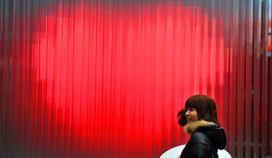 日前,一個(gè)心形創(chuàng)意的電子發(fā)光雕塑在紐約時(shí)報(bào)廣場(chǎng)向游客和市民開放,以迎接即將到來的情人節(jié)。這個(gè)心形創(chuàng)意電子雕塑由400個(gè)LED發(fā)光管組成,游客只要用手觸摸電子開關(guān),LED發(fā)光管就會(huì)閃現(xiàn)紅色的心形。(新華社 記者 王雷 攝)