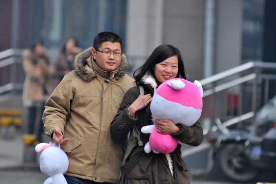 情人節(jié)引爆青島甜蜜經(jīng)濟 情侶街頭曬恩愛(圖)