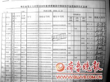 在助學(xué)金發(fā)放表上,領(lǐng)款人均不是學(xué)生本人,每個(gè)班簽名都是同一人。 本報(bào)棗莊2月14日訊 在棗莊市十六中,申請(qǐng)到國家助學(xué)金的家庭困難學(xué)生,其銀行卡有不少都在班主任的手里。每年國家打了多少錢到卡里他們都不清楚,只是每年被動(dòng)地從班主任那里領(lǐng)到時(shí)多時(shí)少的助學(xué)金。 小李(化名)是棗莊市十六中的一名高三學(xué)生,2009年,他和班里其他幾名同學(xué)一起填表,申請(qǐng)了資助家庭困難學(xué)生的普通高中國家助學(xué)金。審核通過后,學(xué)校根據(jù)表格的申請(qǐng)給每個(gè)同學(xué)辦理了銀行卡用于接收助學(xué)金。 “用我們的身份證開完戶,填完表格后,剩下的事就和我們沒有關(guān)系了?!毙±罡嬖V記者,銀行卡辦好之后就一直放在班主任的手里,班主任每學(xué)期會(huì)根據(jù)情況發(fā)放給班里的同學(xué)?!坝袝r(shí)候多有時(shí)候少,我拿到的幾次是400多元?!毙±钫f。 對(duì)于助學(xué)金的這種發(fā)放方式,小李和其他幾名同學(xué)都很疑惑,弄不清楚自己究竟有多少助學(xué)金可領(lǐng),更不清楚每年卡里的錢究竟是多少?!拔覀兙褪窍肱宄还灿卸嗌馘X,都是怎么發(fā)放的?!?/p> 除了對(duì)助學(xué)金的發(fā)放有些弄不清外,還有一件事讓小李和同學(xué)們感覺很不舒服?!坝袝r(shí)班級(jí)會(huì)留一點(diǎn)助學(xué)金做班費(fèi)和獎(jiǎng)勵(lì)基金,說是作為班級(jí)活動(dòng)開銷和對(duì)優(yōu)秀同學(xué)的獎(jiǎng)勵(lì)?!毙±罡嬖V記者,有時(shí)班級(jí)會(huì)根據(jù)期末考試的成績對(duì)班級(jí)前幾名進(jìn)行獎(jiǎng)勵(lì),而獎(jiǎng)勵(lì)的錢就是從助學(xué)金中來的。 小李表示,這種方式令他和一些同學(xué)很傷心,之所以會(huì)發(fā)生這種事情,就是因?yàn)榇蠹艺J(rèn)為領(lǐng)取助學(xué)金的同學(xué)家庭條件并不差,不如給班級(jí)作貢獻(xiàn)。 棗莊市十六中副校長潘選海告訴記者,“每個(gè)班級(jí)申請(qǐng)助學(xué)金基本上有5個(gè)名額,但是不一定每個(gè)班就剛好5個(gè)人需要幫助,所以有時(shí)候班主任會(huì)根據(jù)實(shí)際情況進(jìn)行調(diào)整。” 延伸調(diào)查 助學(xué)金領(lǐng)款人都不是學(xué)生本人 13日,在棗莊市第十六中學(xué),記者跟隨學(xué)校會(huì)計(jì)查看了助學(xué)金的發(fā)放記錄。在一張“棗莊市第十六中學(xué)2010年秋季普通高中國家助學(xué)金受助學(xué)生匯總表”上,記者看到,每個(gè)班級(jí)基本上為5個(gè)名額,上面有學(xué)生的姓名、學(xué)號(hào)、身份證號(hào)和銀行卡號(hào)。受助檔次有三檔,一檔500元,二檔750元,三檔1000元,每個(gè)班總金額在3700元左右。 棗莊市第十六中學(xué)的會(huì)計(jì)告訴記者,助學(xué)金每學(xué)期發(fā)放一次,直接打到學(xué)生的銀行卡中。記者在表格上看到,在領(lǐng)款人簽字一欄,每個(gè)班級(jí)5個(gè)名額所簽名字都是一樣的,均不是學(xué)生的姓名。針對(duì)銀行卡在班主任手里的情況,會(huì)計(jì)表示并不清楚,會(huì)申請(qǐng)學(xué)校進(jìn)行檢查處理。 資料鏈接 從2007年秋季開學(xué)起,山東省設(shè)立了普通高中政府助學(xué)金,用于資助普通高中在校生中家庭經(jīng)濟(jì)困難學(xué)生,平均資助標(biāo)準(zhǔn)為每生每年1000元,資助面平均為普通高中在校生的8%,具體分為1檔500元,2檔1000元,3檔1500元。 2010年秋季學(xué)期,財(cái)政部、教育部共同發(fā)文,建立普通高中家庭經(jīng)濟(jì)困難學(xué)生資助政策體系,中央與地方共同設(shè)立國家助學(xué)金,用于資助普通高中在校生中家庭經(jīng)濟(jì)困難學(xué)生,平均資助標(biāo)準(zhǔn)為每生每年1500元,具體標(biāo)準(zhǔn)由各地結(jié)合實(shí)際在1000元至3000元范圍內(nèi)確定,可以分為2到3檔,山東省資助面平均為普通高中在校生的10%。(記者 袁沛民) |
